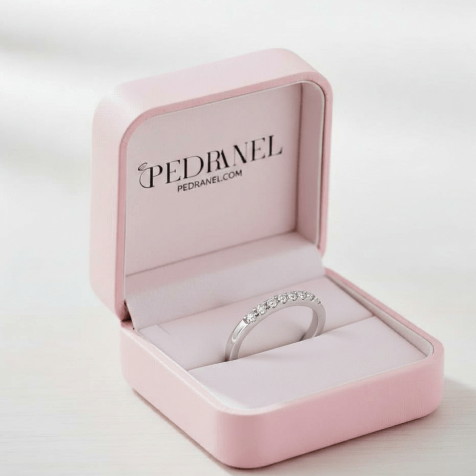 Anel Elegância Silenciosa da Pedranel é a definição de luxo discreto. Projetado para quem valoriza a sofisticação sem esforço, este modelo estilo meia-aliança apresenta um design slim e atemporal que se adapta a qualquer ocasião.