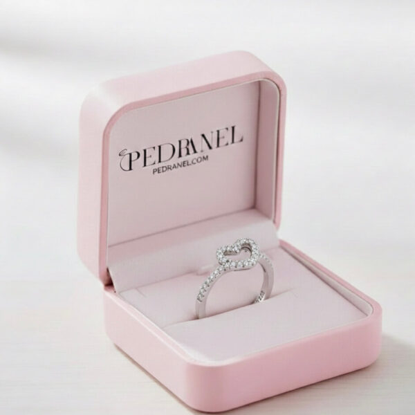 Anel Elo de Amor é uma declaração de estilo e afeto. Seu design apresenta um coração vazado totalmente cravejado, que parece se fundir harmoniosamente ao aro, também adornado por pedras brilhantes. O resultado é uma peça que captura a luz de todos os ângulos, oferecendo um brilho intenso e sofisticado.