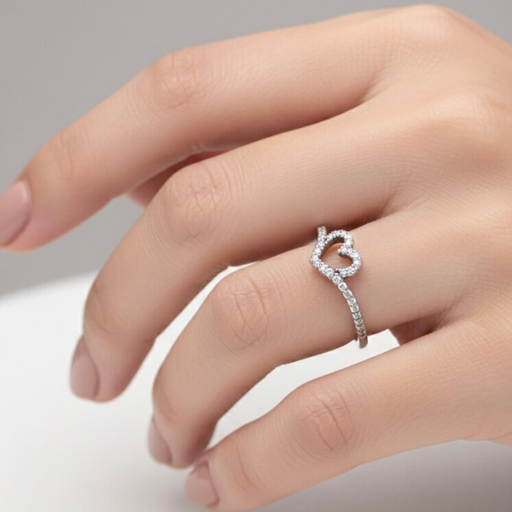 Design Romântico e Moderno: O formato do coração integrado ao aro traz uma estética contemporânea e fluida.