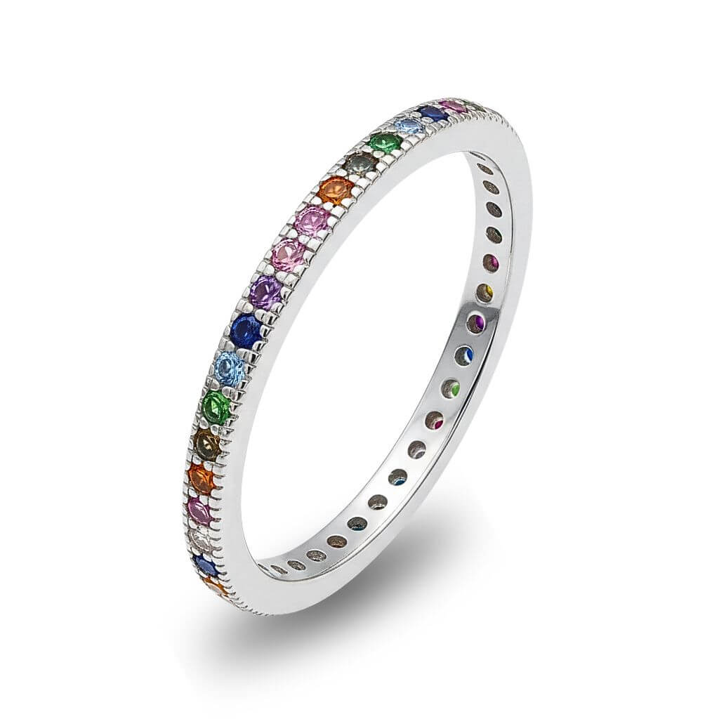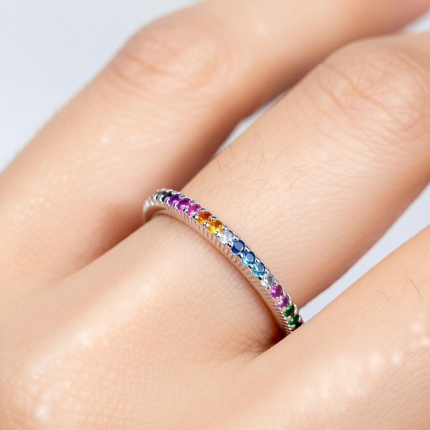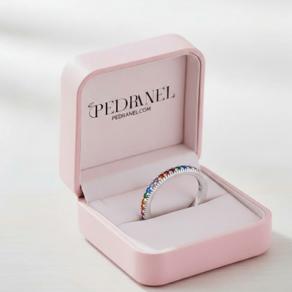 Anel Espectro de Luz é uma celebração da elegância em movimento. Com um design estilo eternity, ele foi pensado para quem busca uma joia que combine versatilidade e um brilho hipnotizante em cada ângulo.