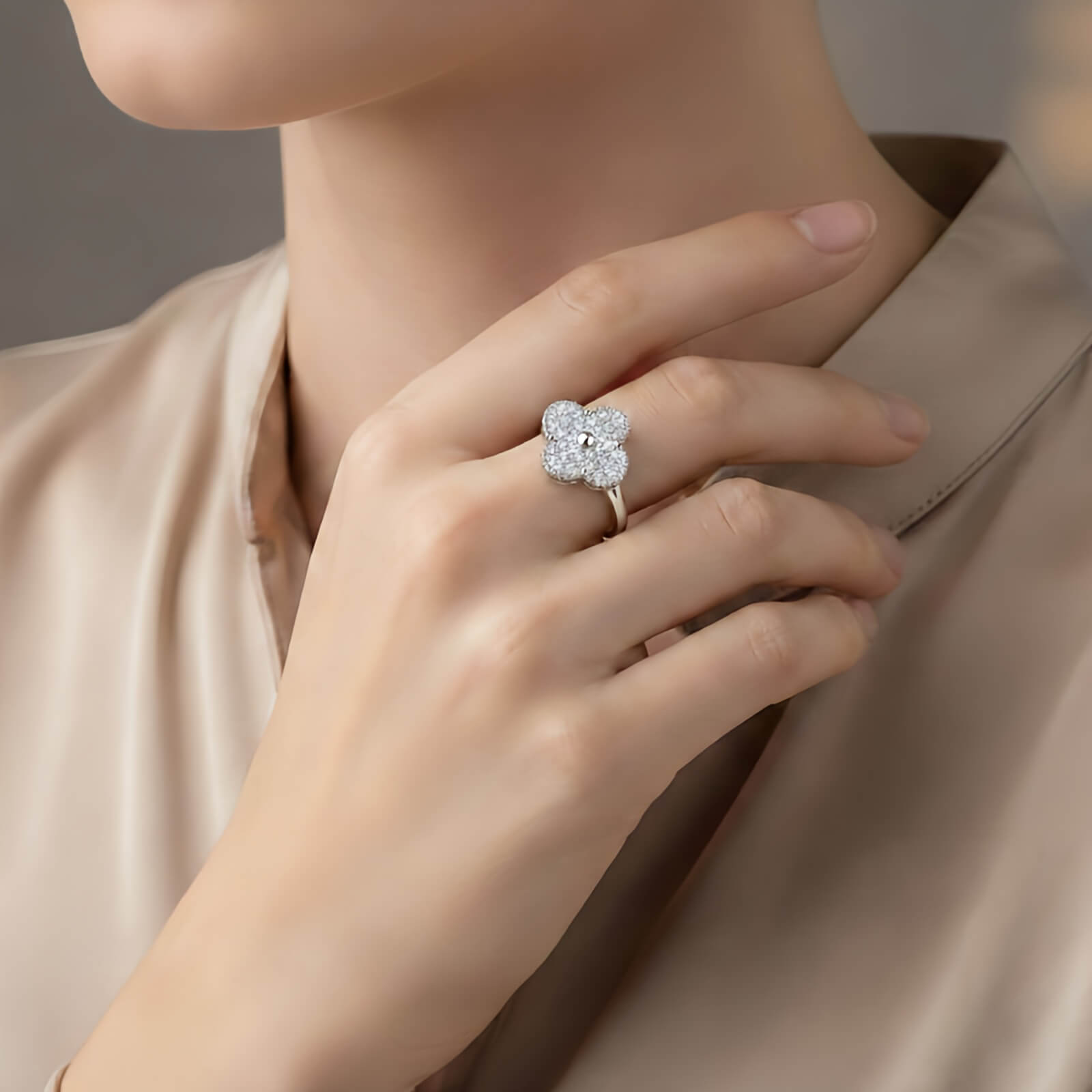Anel Essência de Trevo, uma exclusividade Pedranel. Inspirado no clássico design de quatro pétalas, este anel não é apenas um acessório, mas um verdadeiro amuleto de elegância para o seu dia a dia.