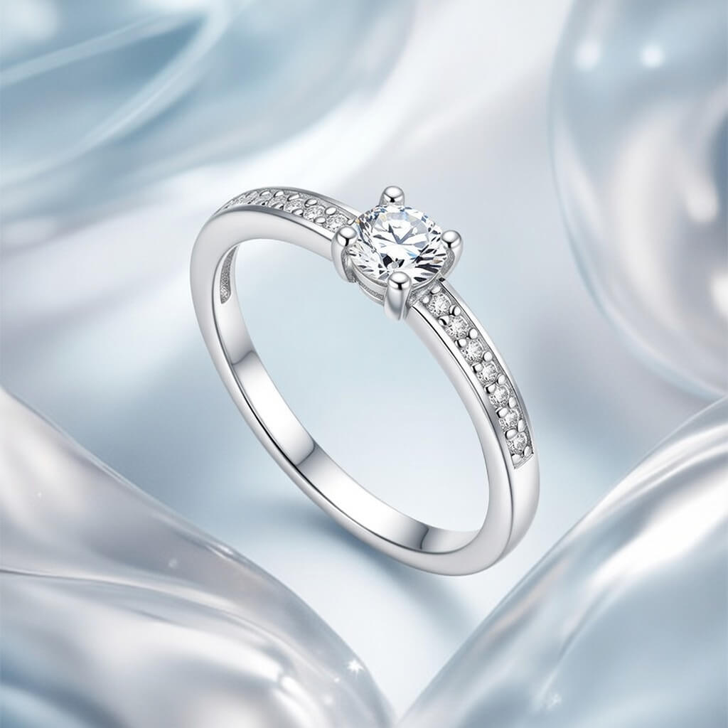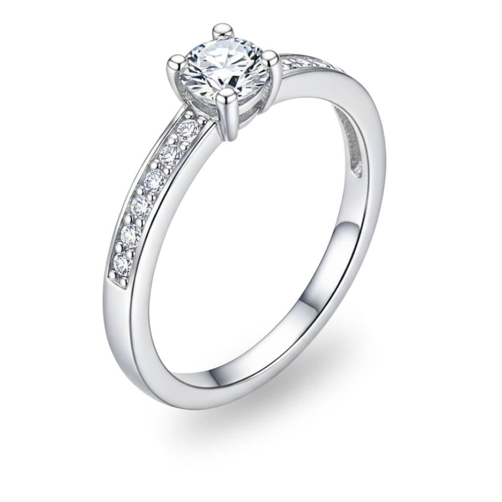 Confeccionado em Prata 925 de alta qualidade, o anel apresenta um acabamento polido impecável que garante durabilidade e um brilho espelhado. O destaque principal é a sua magnífica pedra central em lapidação brilhante, elevada por uma cravação de quatro garras que maximiza a entrada de luz.