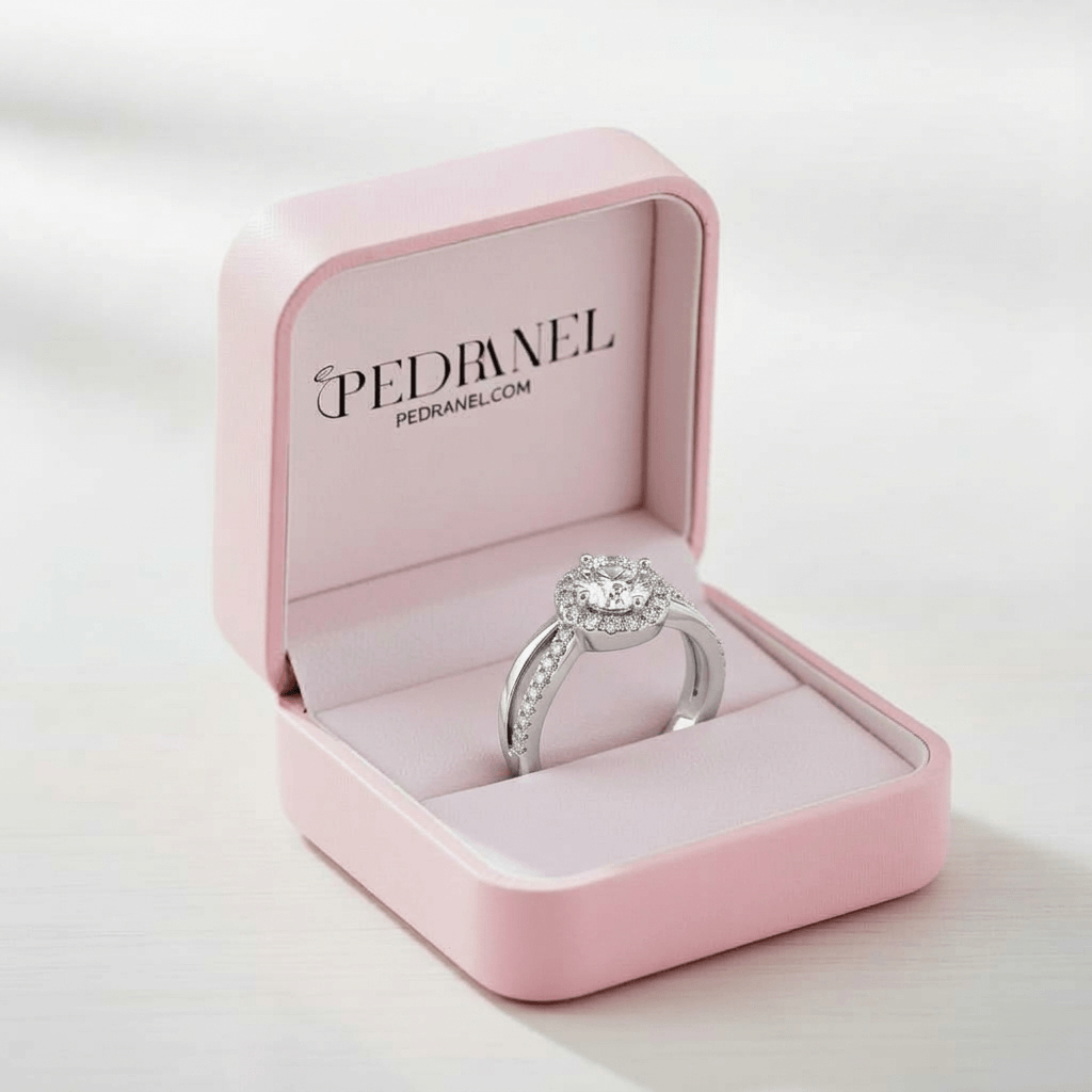 Cercada por um halo de zircônias premium, a pedra central ganha uma amplitude extraordinária, refletindo a luz de todos os ângulos com um esplendor incomparável. É a joia ideal para quem busca marcar um noivado, uma graduação ou simplesmente presentear a si mesma com um toque de elegância atemporal.