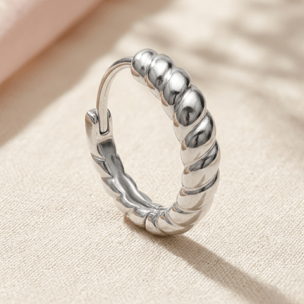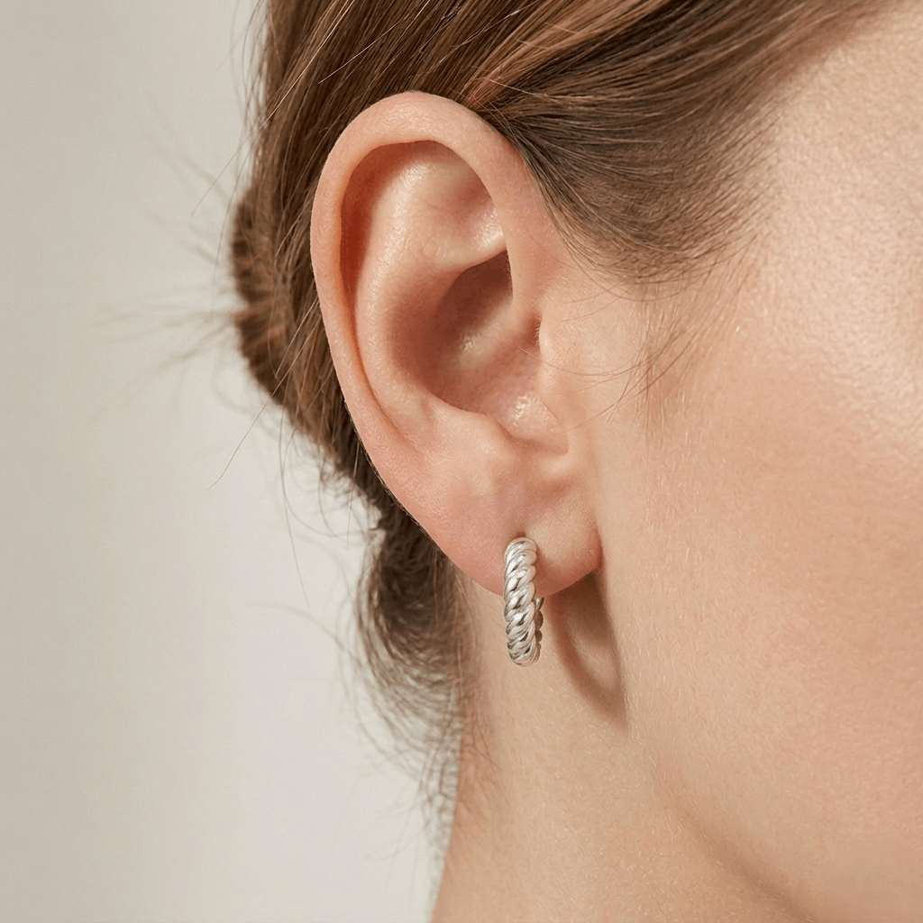 Brincos Argola Torção Italiana, inspiradas no requinte das vilas italianas, estas argolas apresentam uma textura helicoidal esculpida que captura e reflete a luz de todos os ângulos. Com um design encorpado e acabamento em Prata 925 de alta lei, elas são a peça-chave para quem busca um acessório marcante, sem abrir mão da leveza e do conforto.
