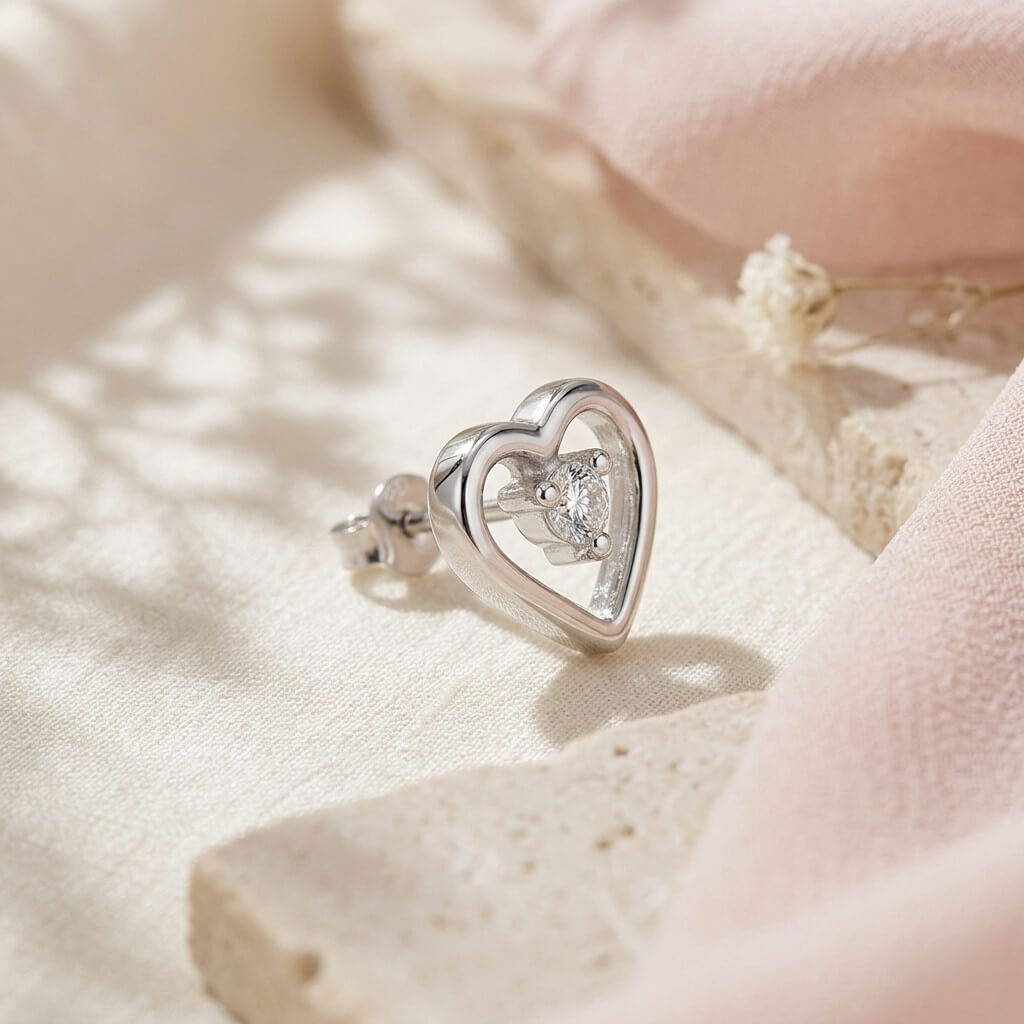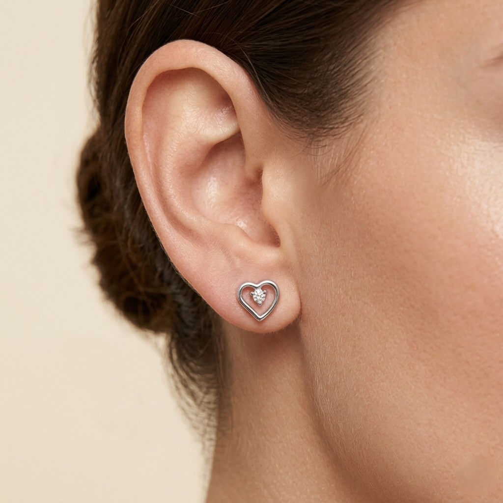 Os Brincos Coração Contour da Pedranel foram desenhados para mulheres que buscam uma joia delicada, mas com personalidade. Com um design vazado que valoriza as linhas suaves do coração, cada peça apresenta um ponto de luz central em zircônia de alta lapidação, criando um efeito de brilho suspenso que captura a luz de todos os ângulos.