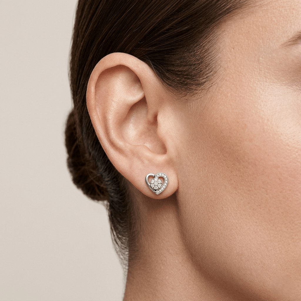 Os Brincos Coração Pavé Imperial da Pedranel apresenta um design vazado sofisticado, onde o centro é coroado por um agrupamento denso de zircônias de alta lapidação. Esse efeito “pavê” maximiza a reflexão da luz, garantindo um brilho comparável ao de diamantes.