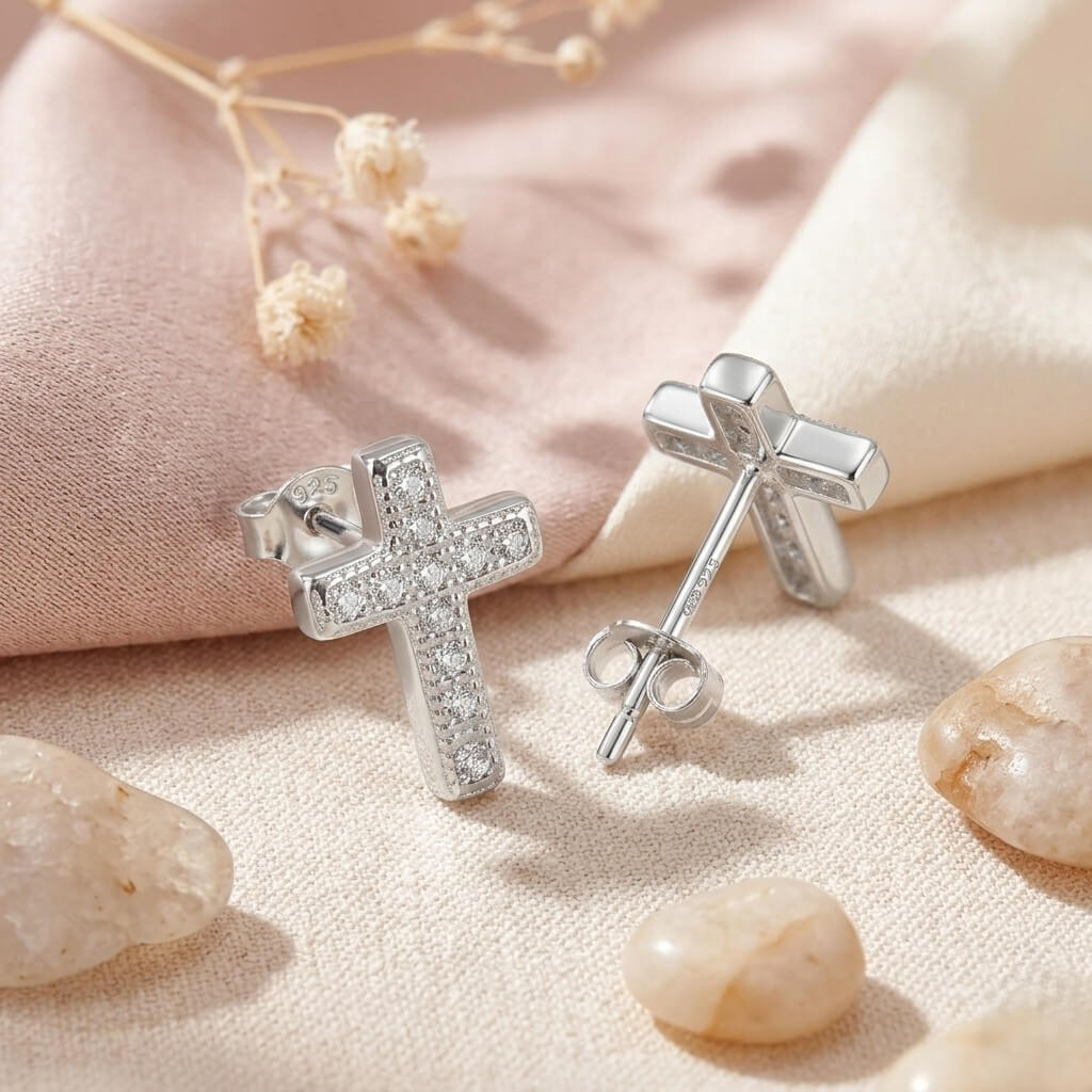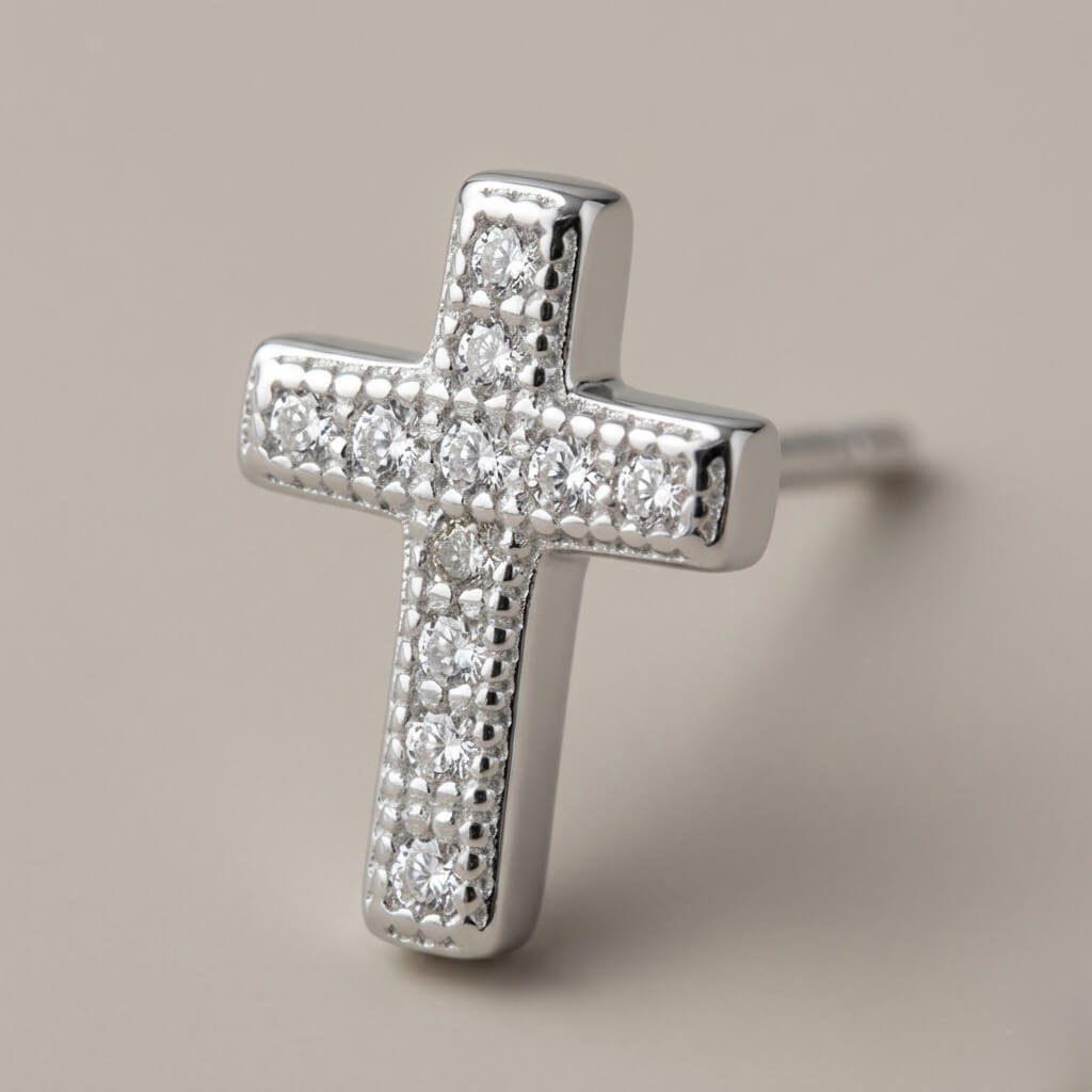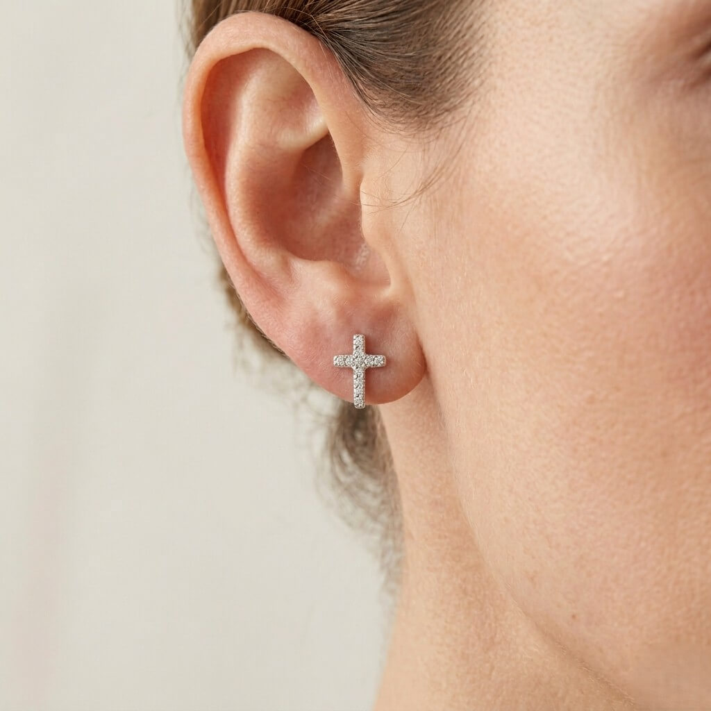 Brincos Cruz Clássica Cravejada da Pedranel. Esta peça une o simbolismo atemporal da cruz a um acabamento de alta joalheria, resultando em um acessório delicado e, ao mesmo tempo, marcante.