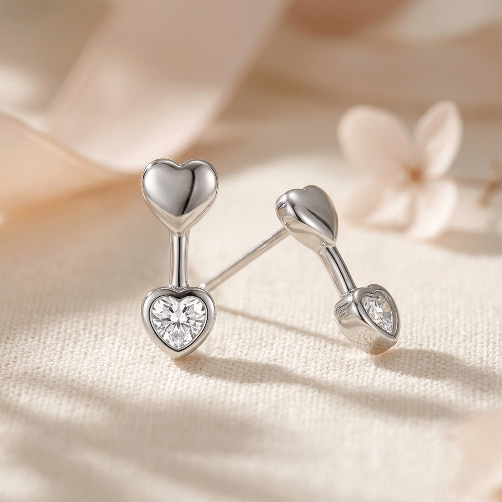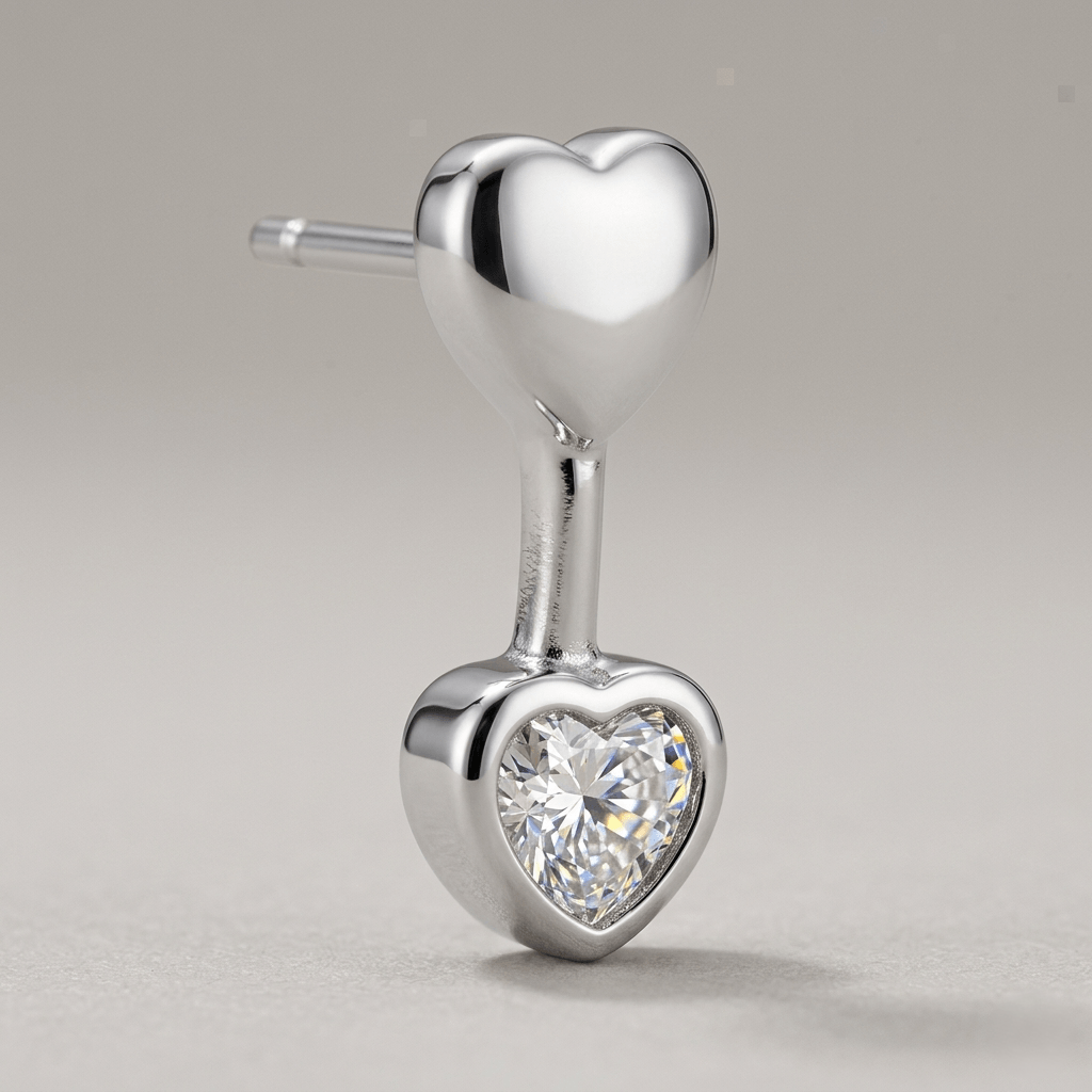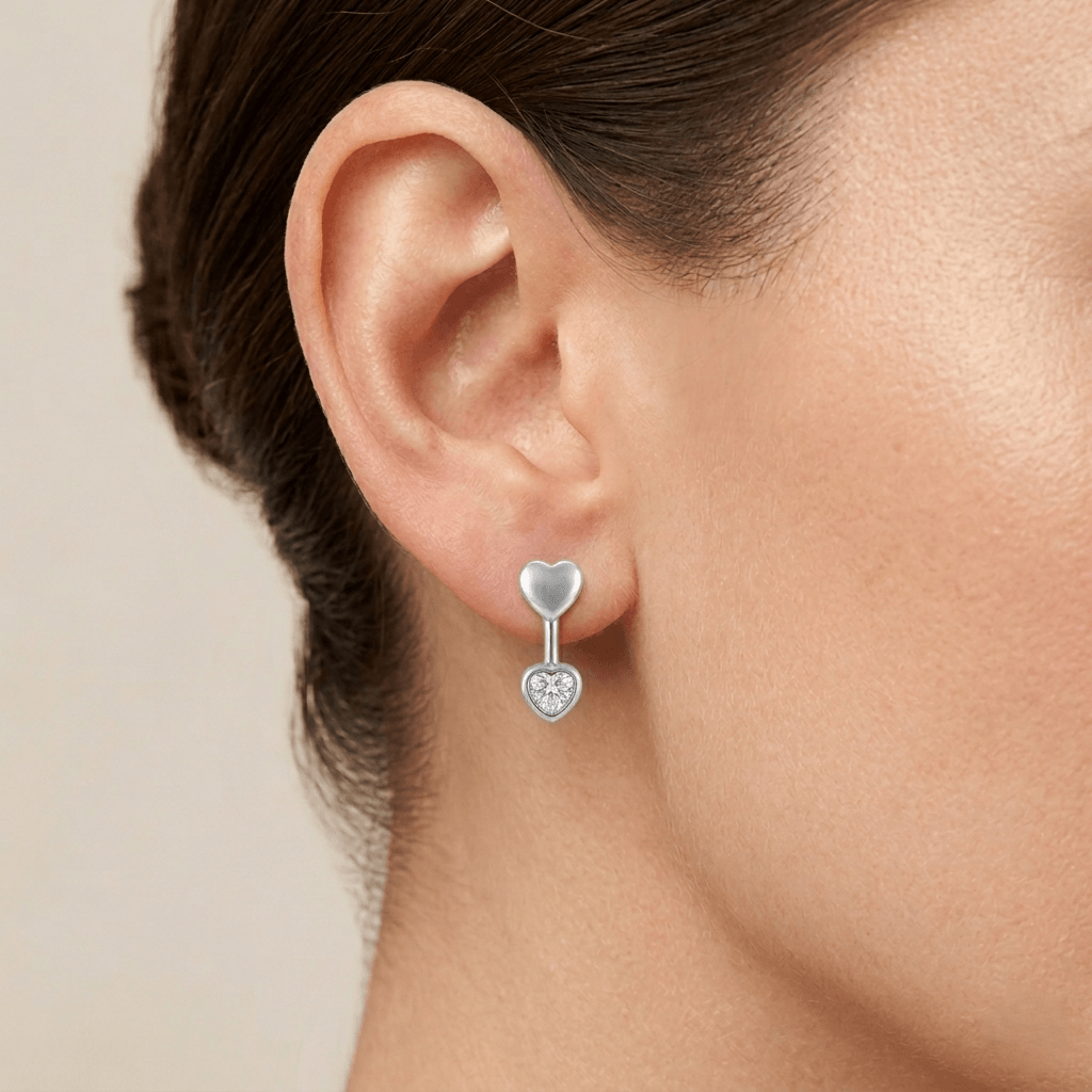 Brincos Ear Jacket Coração Minimalista, uma peça que une o romantismo clássico do coração com o design contemporâneo que é tendência absoluta na joalheria.