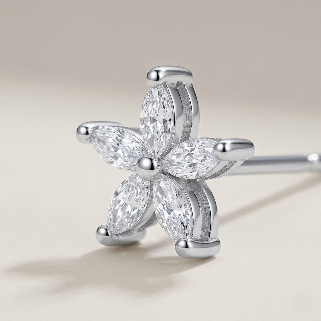 Design: Formato floral de cinco pétalas (lapidação marquise).