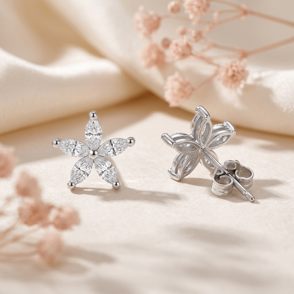 Confeccionados em Prata 925 legítima, estes brincos oferecem o equilíbrio ideal entre o design clássico floral e o acabamento contemporâneo de alta joalheria.
