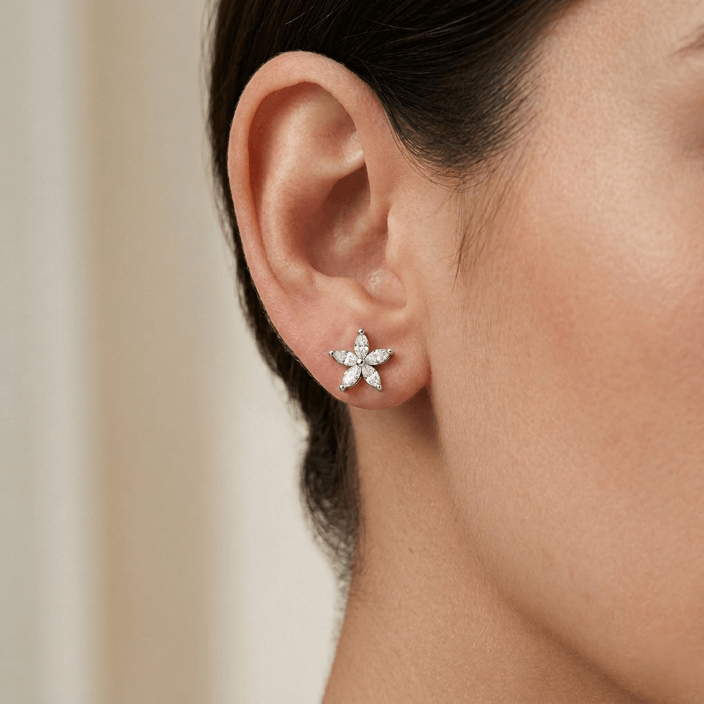 Brincos Eterno Desabrochar da Pedranel são a escolha perfeita para quem busca unir romantismo e sofisticação. Cada pétala foi meticulosamente cravejada com zircônias em lapidação marquise, criando um brilho intenso que reflete a luz de todos os ângulos.