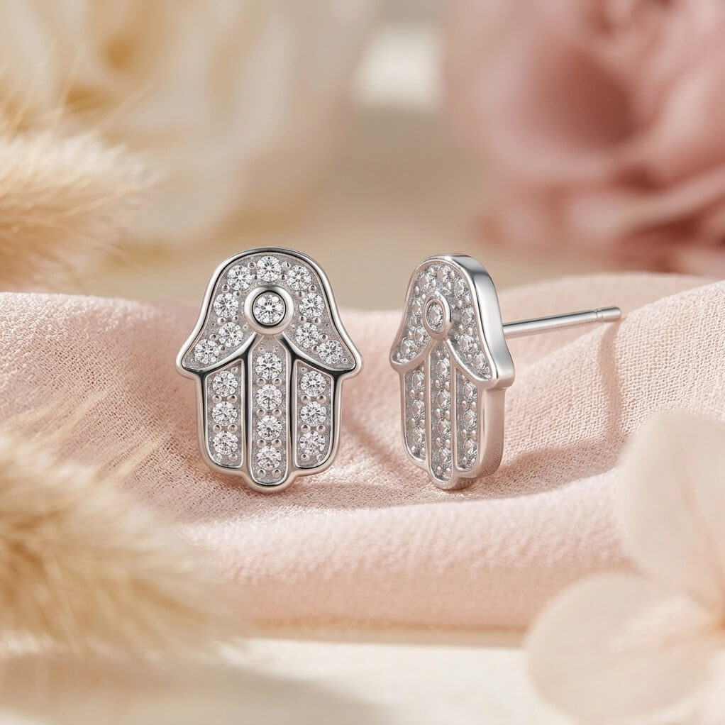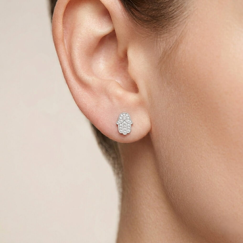 Brincos Feminino Hamsá Pequeno da Pedranel unem o significado espiritual à sofisticação da joalheria moderna.