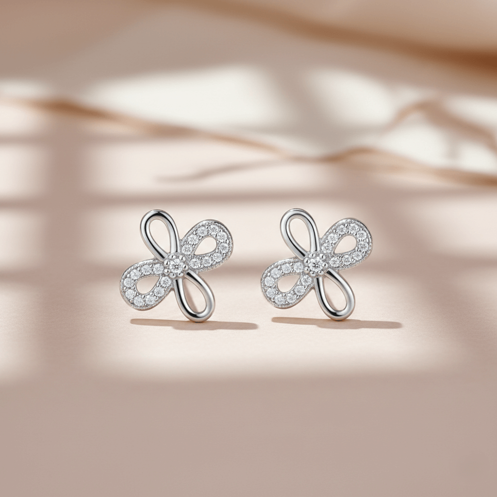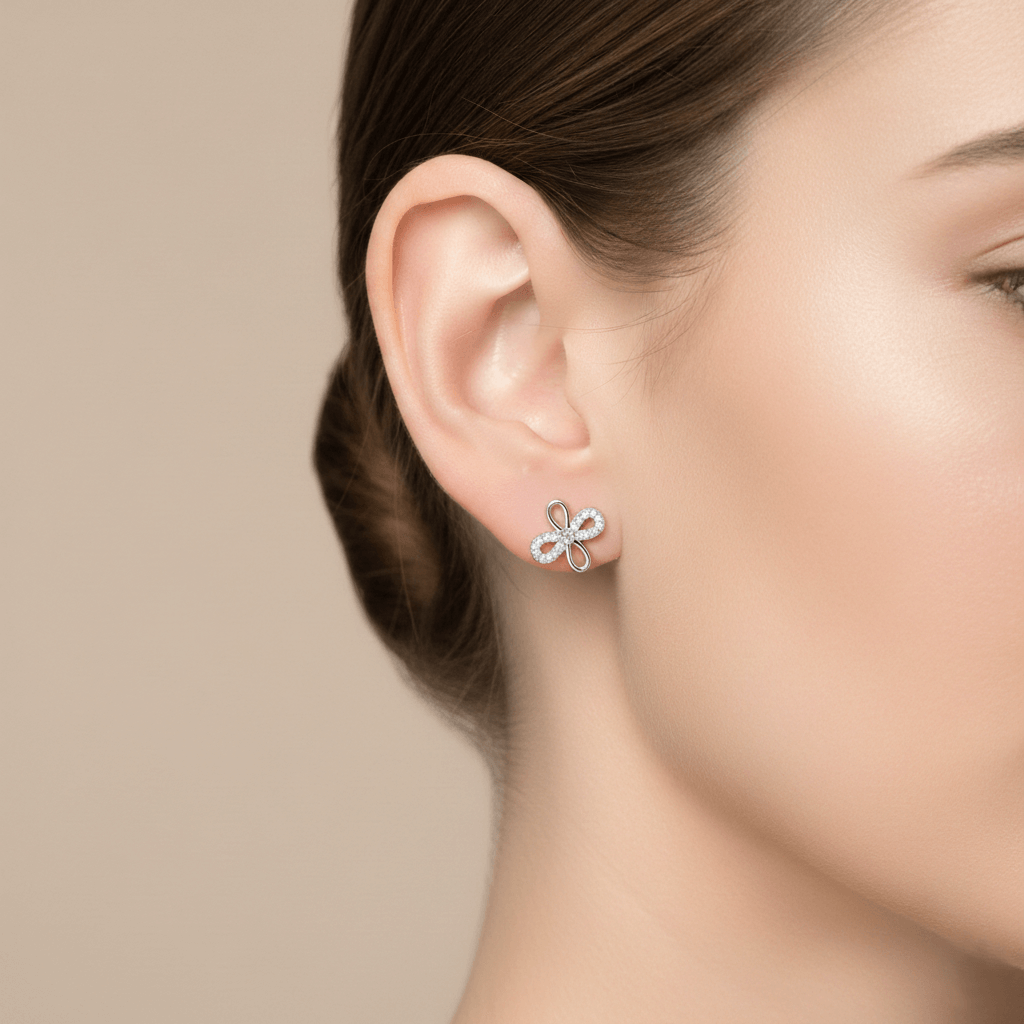 Brincos Floral Cravejado, Eleve o seu visual com a delicadeza atemporal dos nossos Brincos Floral Cravejado. Com um design exclusivo que une a suavidade das pétalas ao simbolismo do infinito, esta joia é a tradução da elegância discreta para a mulher moderna.