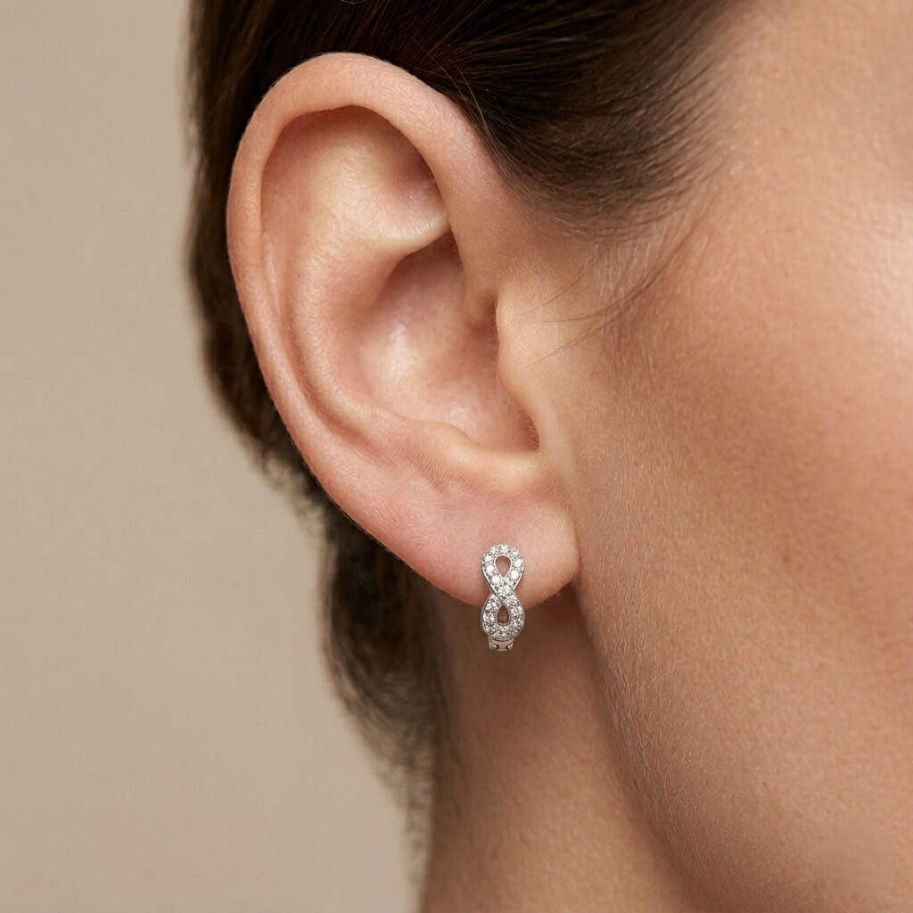 Brincos Luxo Minimalista Infinito em Zircônias da Pedranel é a união perfeita entre o simbolismo eterno e o design contemporâneo. Confeccionado em Prata 925 legítima, este modelo estilo huggie (argola de clique) abraça a orelha com delicadeza, oferecendo conforto absoluto para o uso diário ou ocasiões especiais.