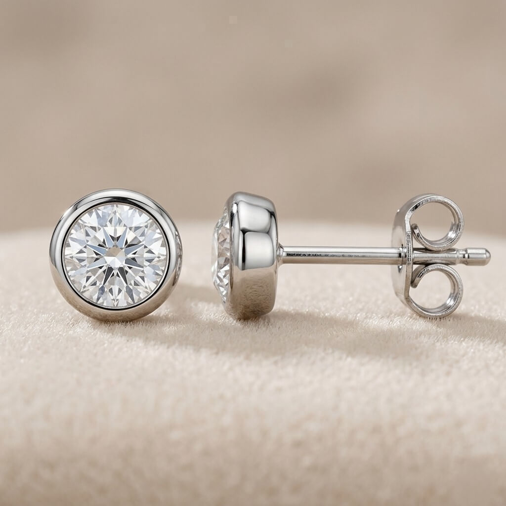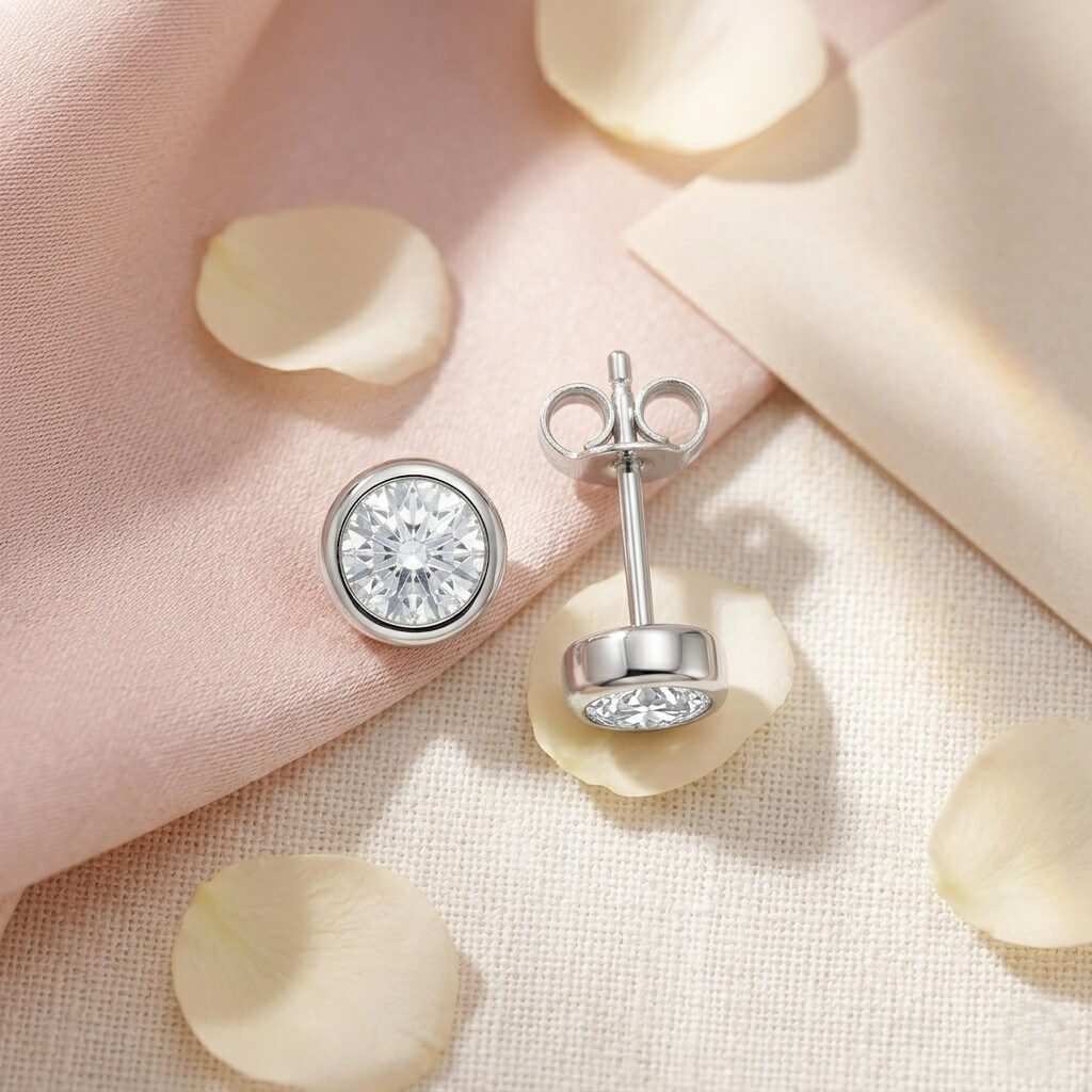 Brincos Minimalistas de Zircônia Round Bezel