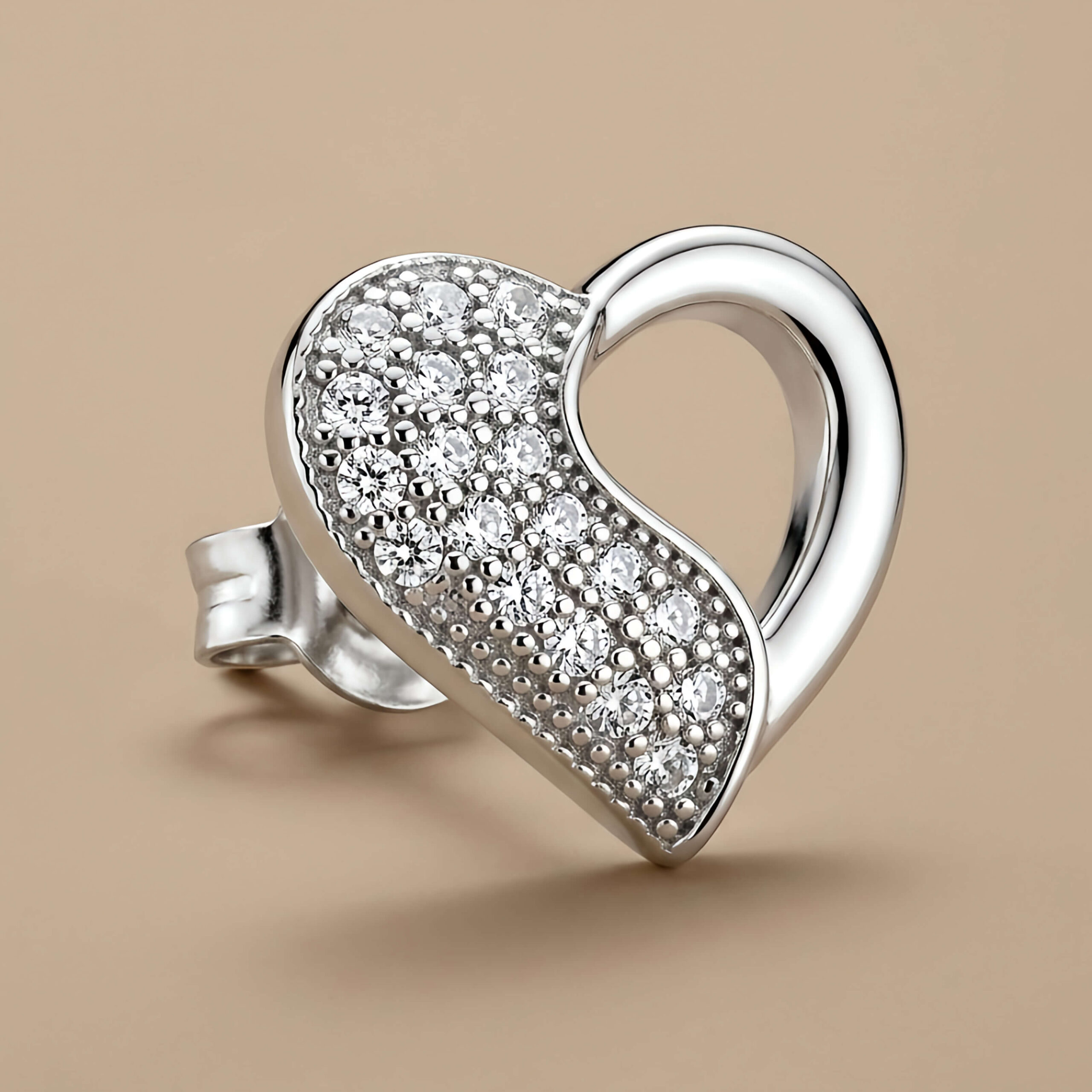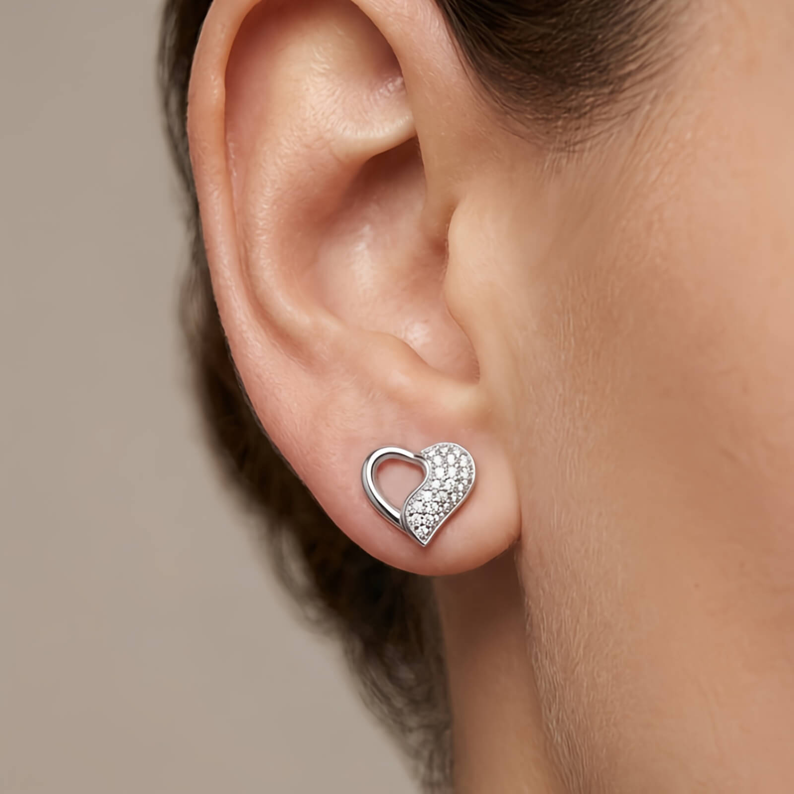 Brincos Sweet Heart da Pedranel foram desenhados para quem não abre mão da delicadeza com um toque de sofisticação. Com um design exclusivo de coração vazado, cada peça apresenta uma metade em prata lisa polida e a outra meticulosamente cravejada com microzircônias de alto brilho.