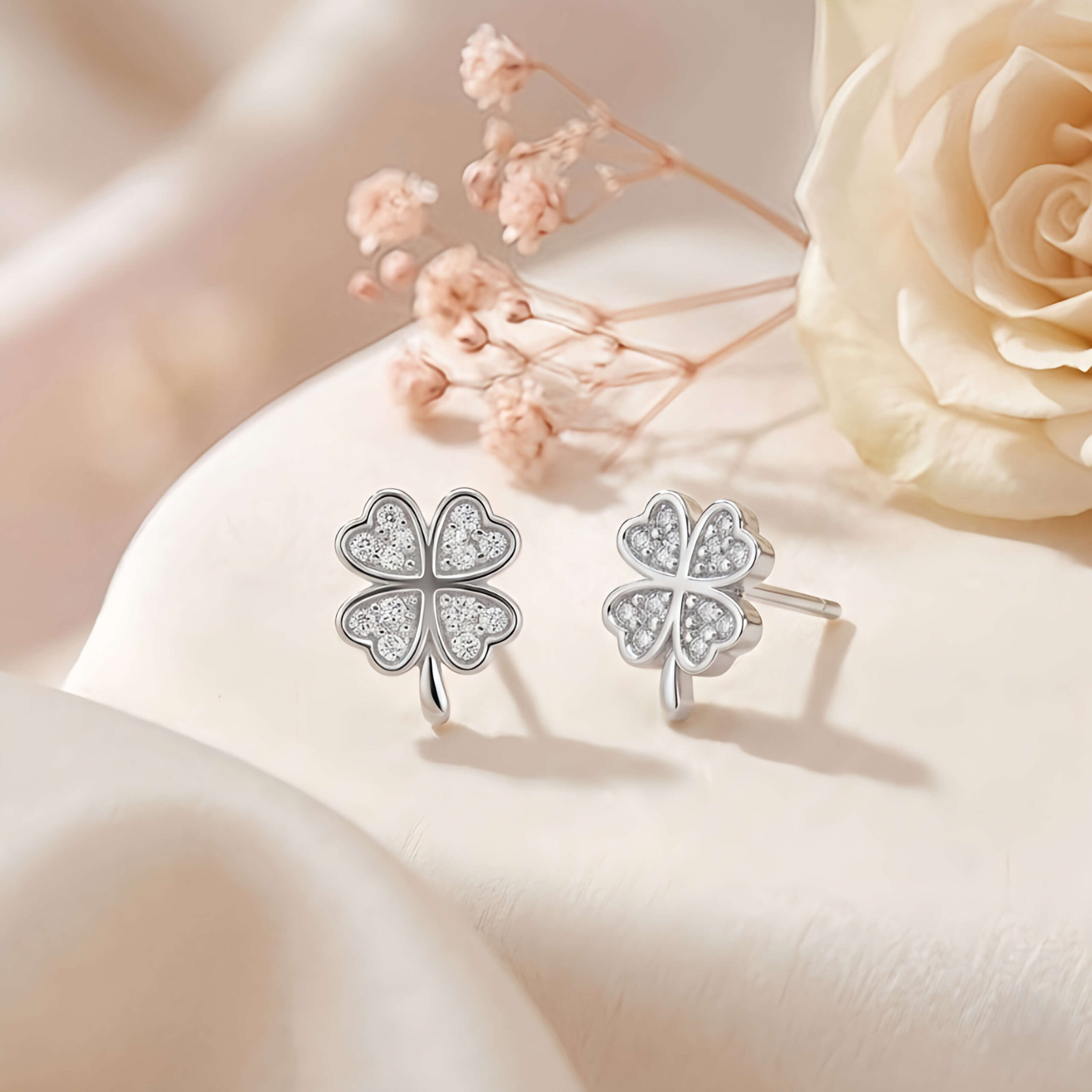 Cravação Luxuosa: Cada pétala do trevo é meticulosamente cravejada com zircônias de alta qualidade, que captam a luz de todos os ângulos.