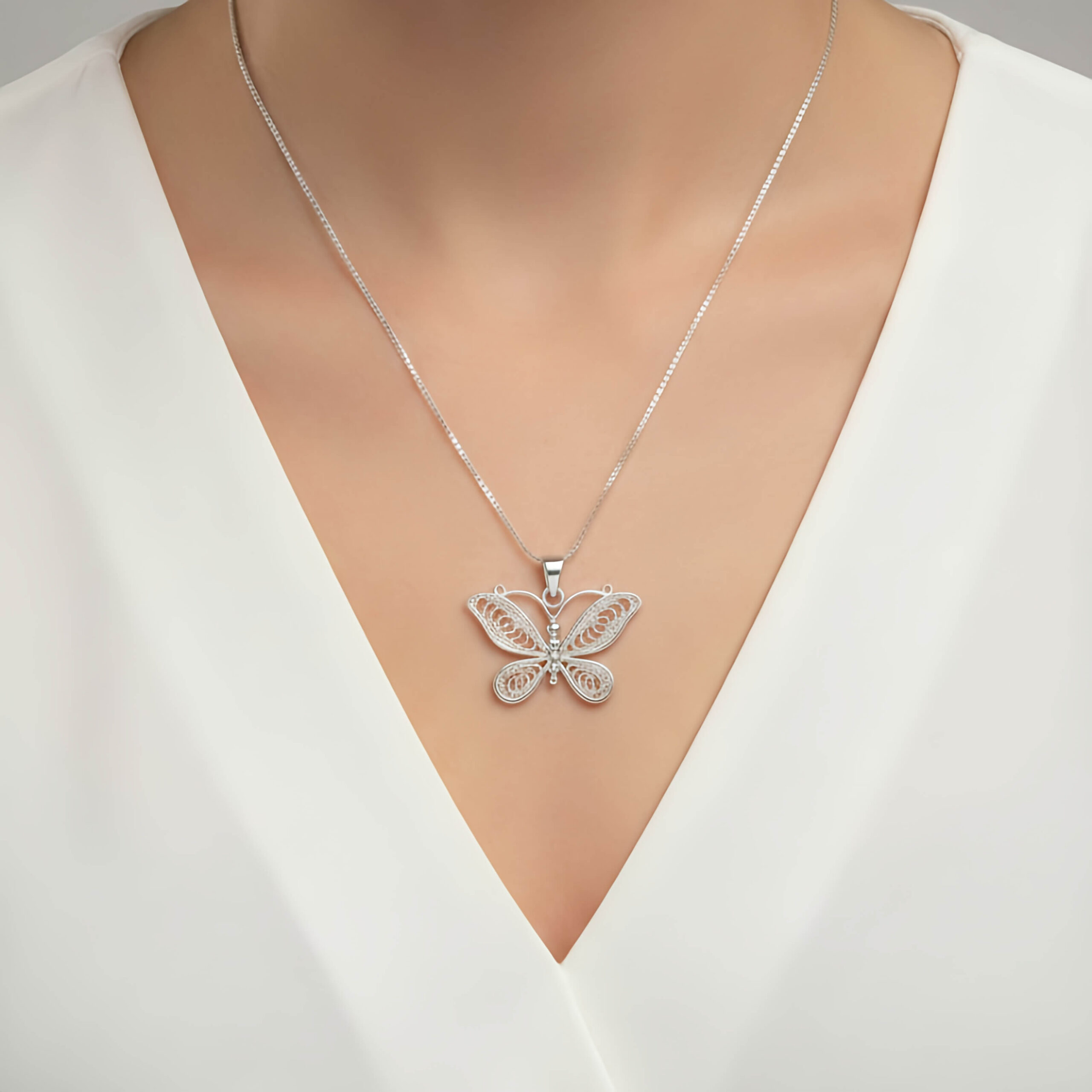 Pingente borboleta delicada trabalhada é uma verdadeira obra de arte em miniatura. Com um design que exalta a feminilidade, ele apresenta asas detalhadamente trabalhadas em filigrana, criando um efeito visual vazado que confere delicadeza e sofisticação à peça.