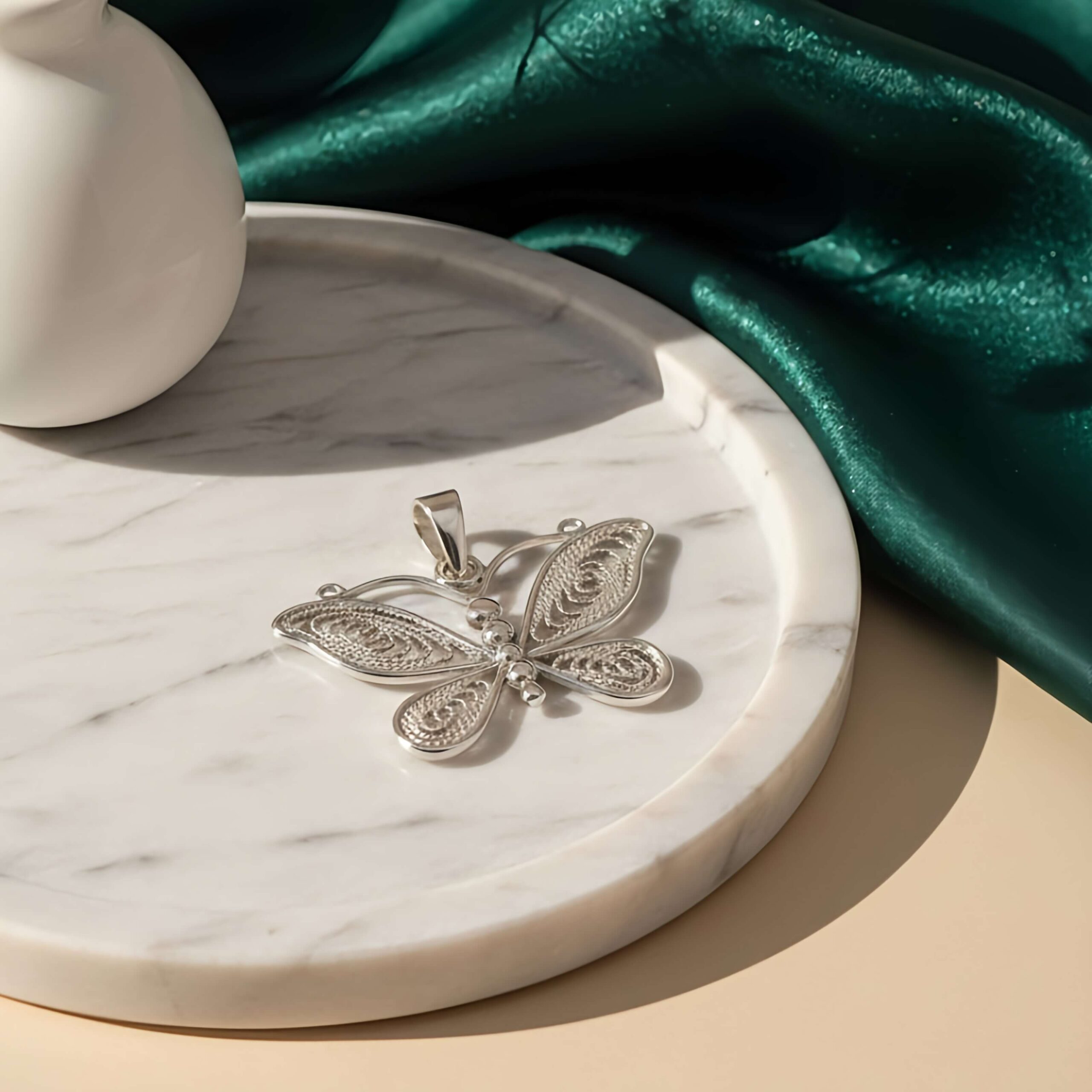 O corpo central, composto por esferas polidas, garante um brilho espelhado que contrasta perfeitamente com a textura minuciosa das asas. É a joia ideal para quem busca um acessório que simboliza renovação e elegância discreta.