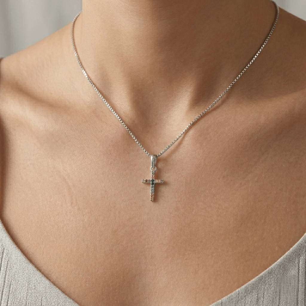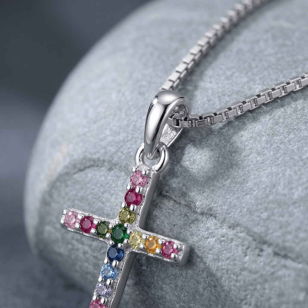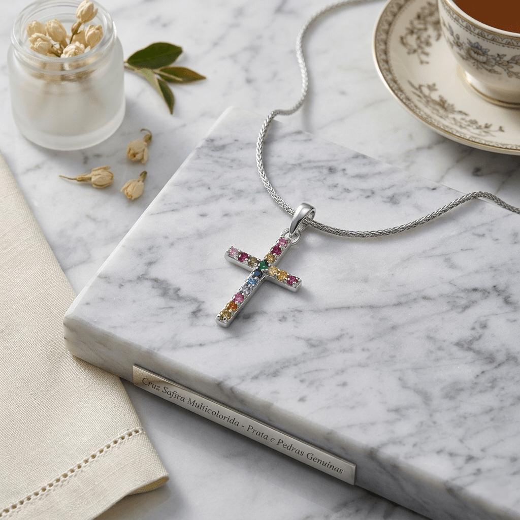 Ideal para quem busca uma joia com significado, mas que não abre mão da modernidade. A cruz multicolorida é versátil: traz alegria aos looks neutros e sofisticação aos visuais mais elaborados. É o presente perfeito para celebrar momentos de proteção e renovação.