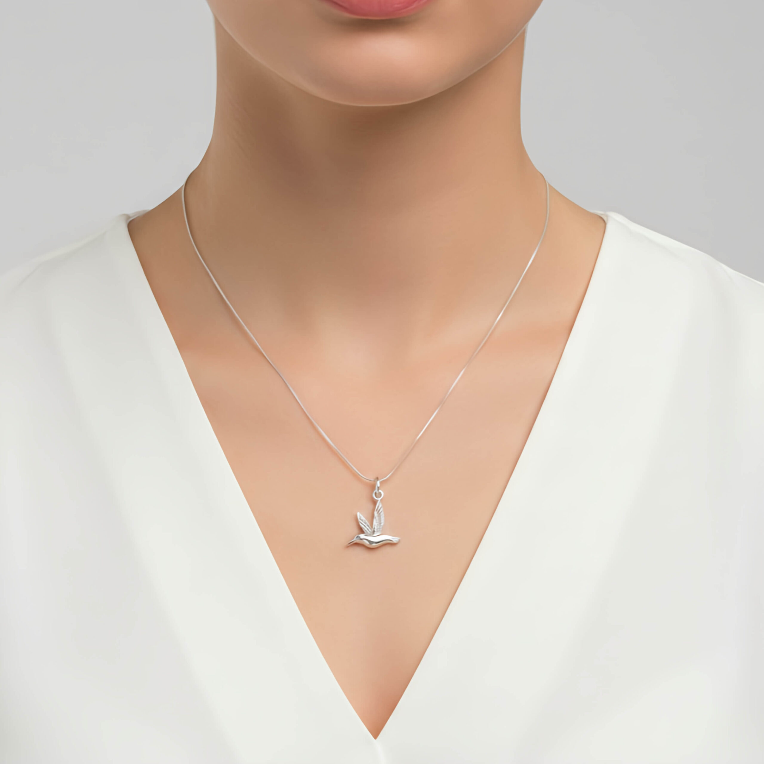 Pingente Essência Alada da Pedranel é uma celebração ao movimento e à delicadeza da natureza. Confeccionado em Prata 925 de alta qualidade, esta joia apresenta o design esculpido de um pássaro em pleno voo, capturando a harmonia entre a força e a suavidade.