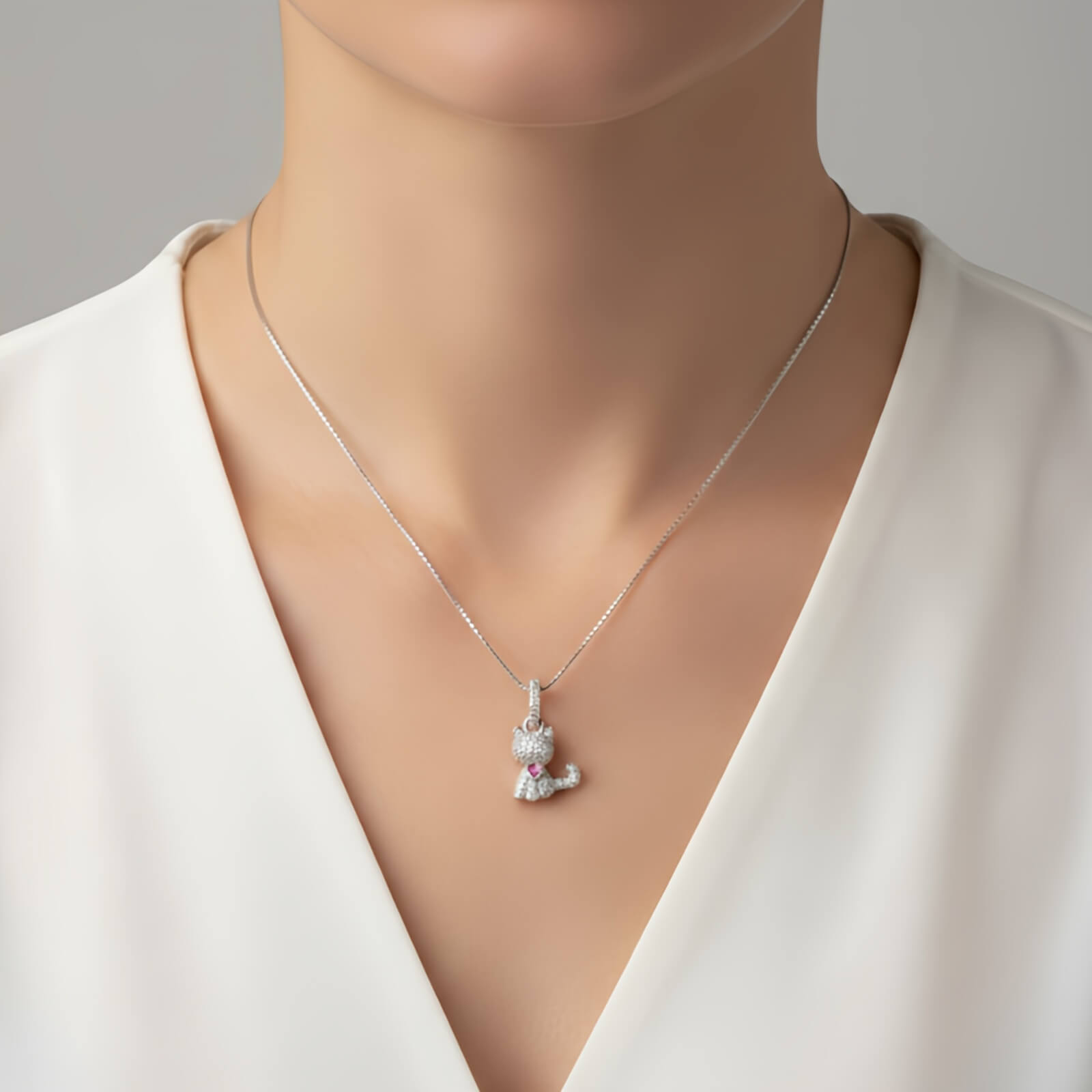 Pingente Gatinha Brilhante da Pedranel. Esta peça delicada é um tributo à elegância e à doçura dos felinos, perfeita para quem busca um acessório que une sofisticação e afeto.