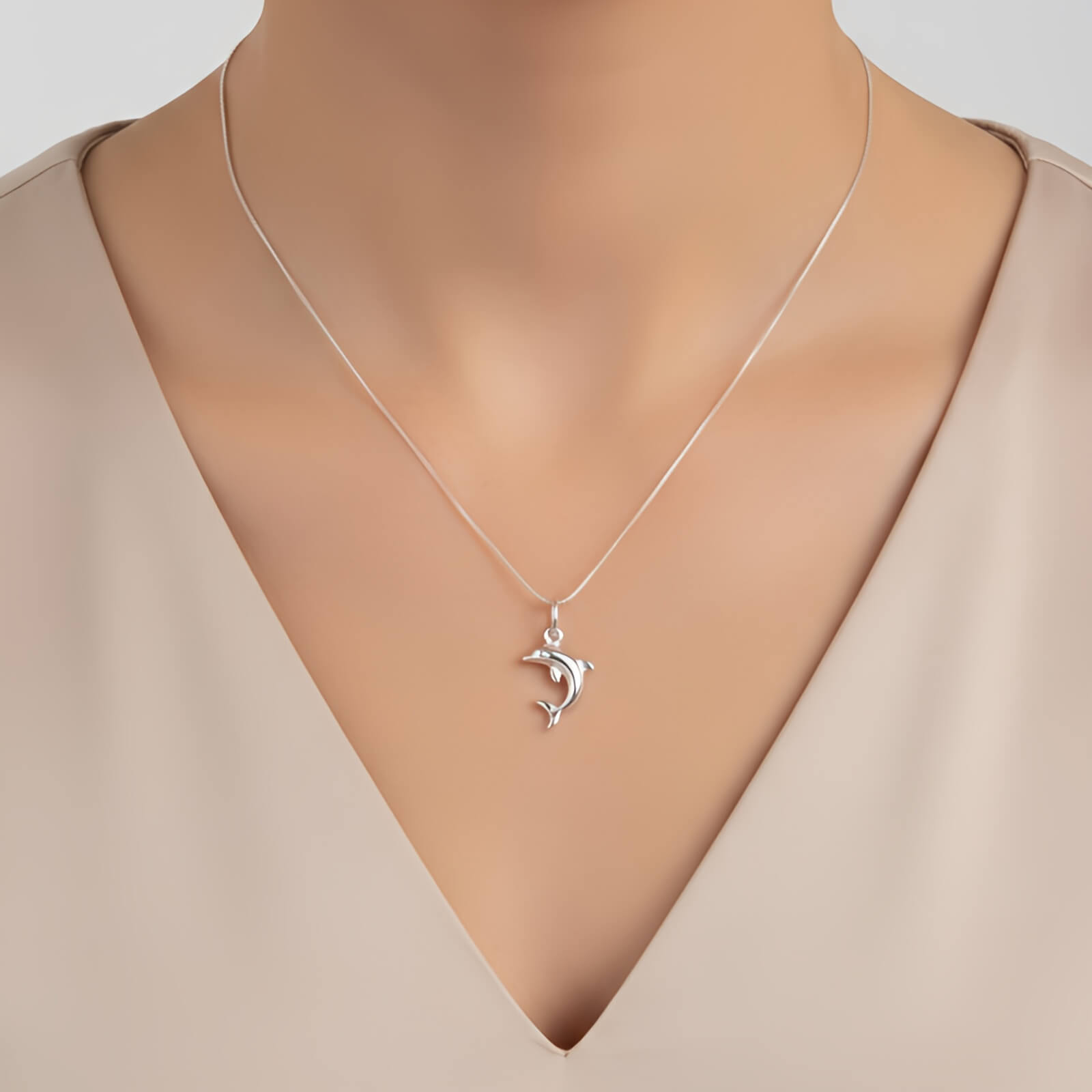 Pingente Golfinho da Pedranel. Confeccionado em Prata 925 legítima, esta joia apresenta um design fluido e delicado que captura o movimento gracioso de um salto sobre as ondas.