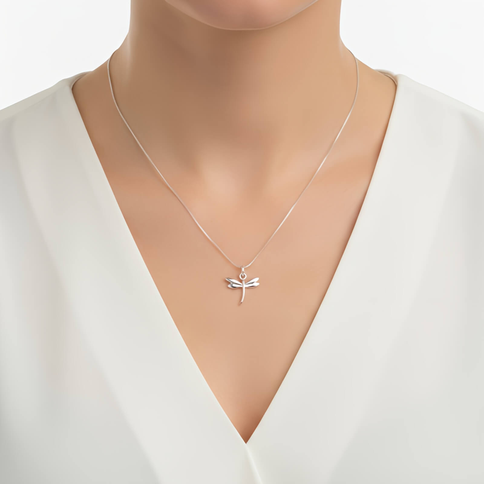 Pingente Libélula da Pedranel. Confeccionado em Prata 925 legítima, esta peça apresenta um design minimalista com acabamento polido de alto brilho, capturando a essência delicada deste ser que simboliza a transformação e a adaptabilidade.