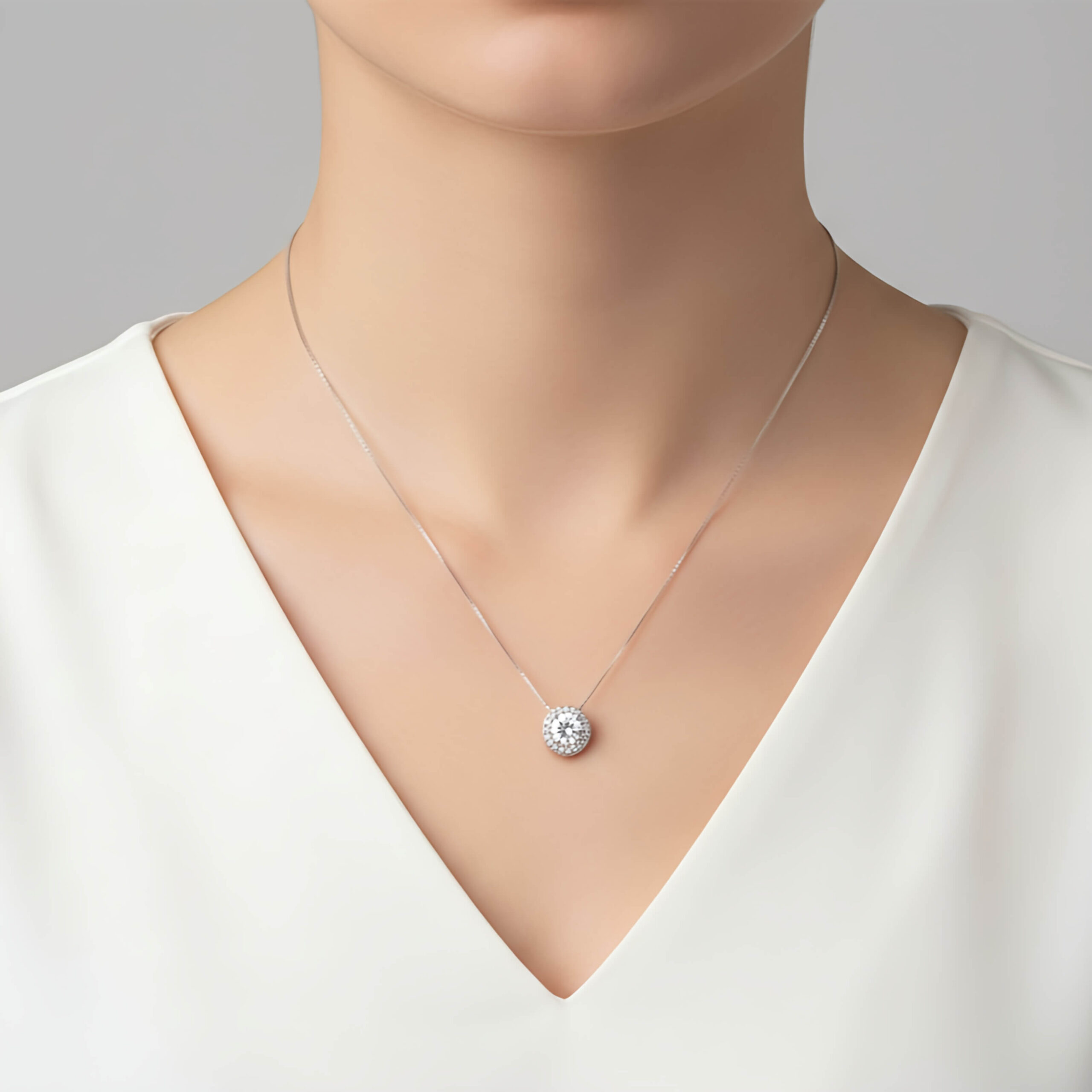 Pingente Luxo Atemporal, confeccionado em Prata 925 de altíssima pureza, este modelo apresenta o design Halo, onde uma pedra central de brilho intenso é emoldurada por uma coroa de microzircônias minuciosamente cravejadas.