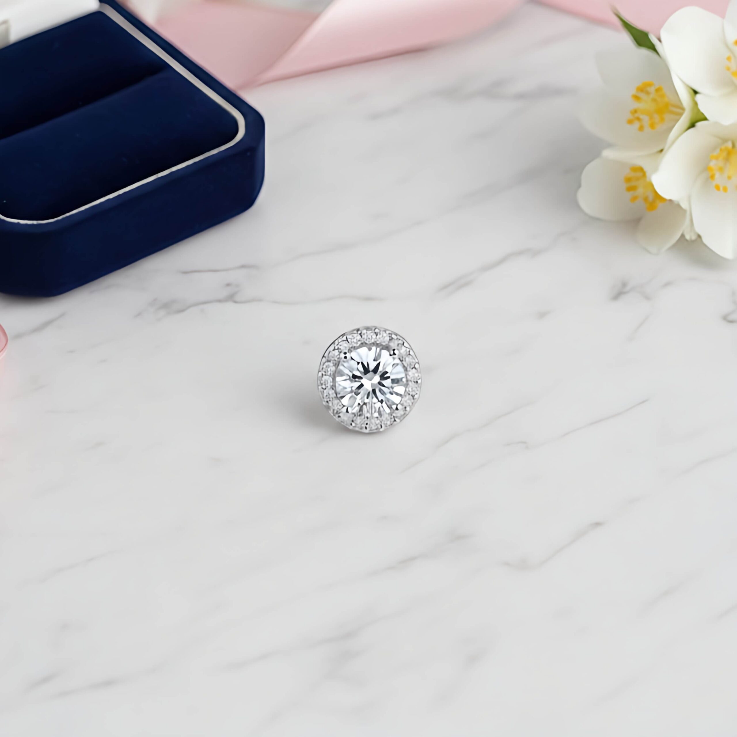 Design: Formato redondo Halo (estilo solitário cravejado).