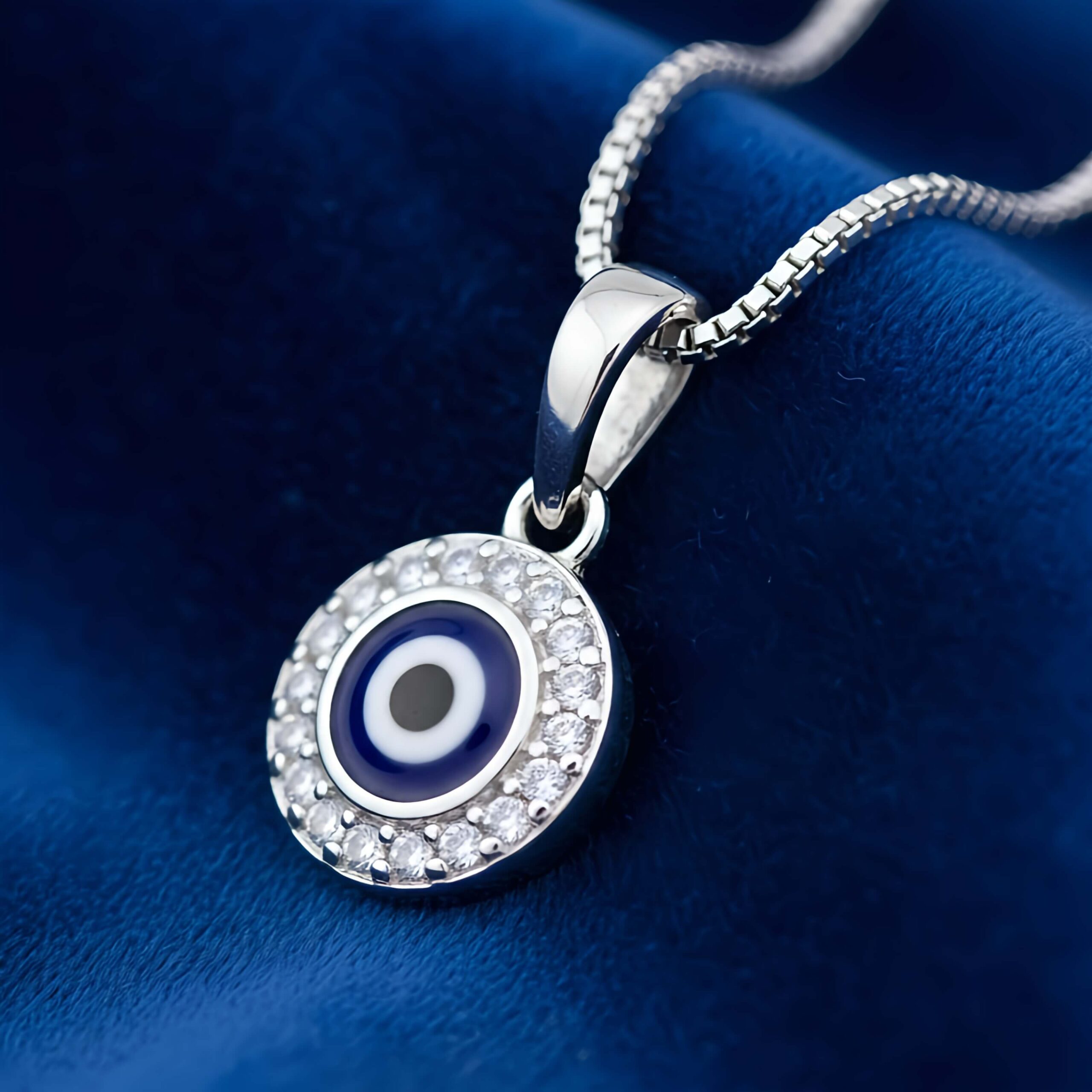 Pingente Olhar de Proteção da Pedranel é mais do que uma joia; é um símbolo milenar de cuidado e boas energias. Confeccionado em Prata 925 legítima, este amuleto apresenta o clássico Olho Grego em resina azul vibrante, emoldurado por um halo de zircônias cravejadas que capturam a luz a cada movimento.