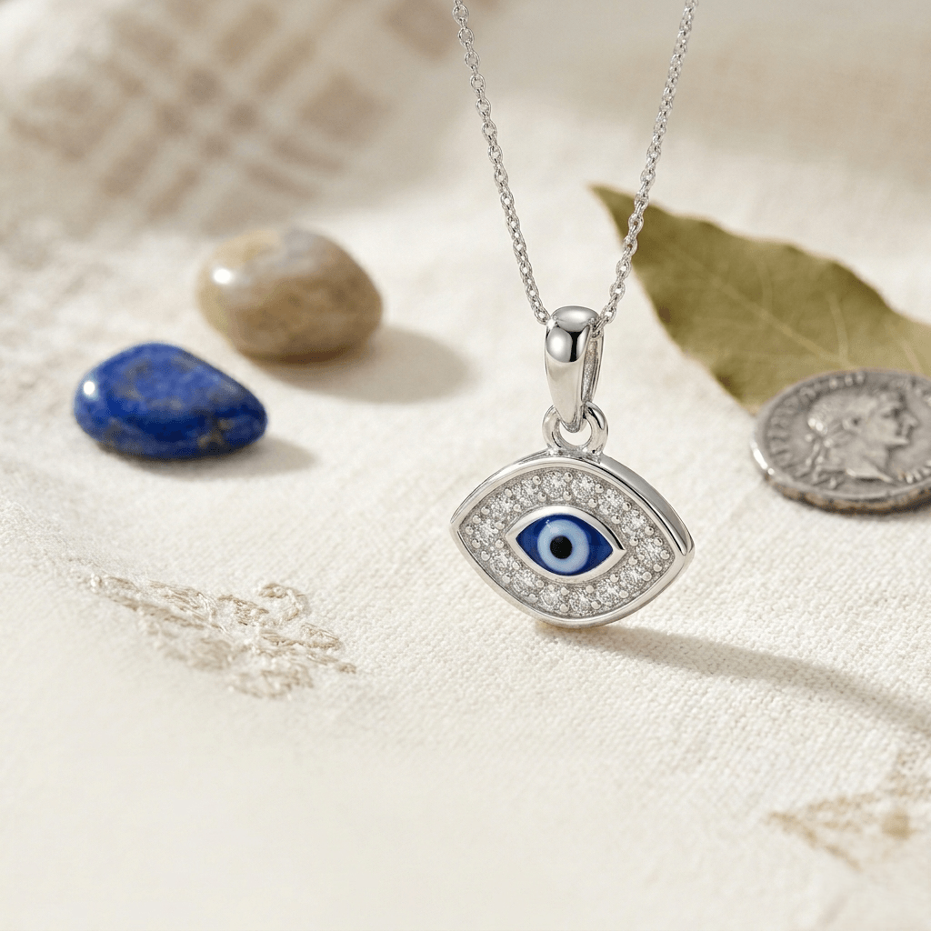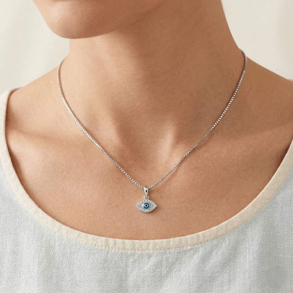 Pingente Olho Grego Cravejado, eleve sua proteção com a sofisticação que só a Pedranel oferece. Este pingente em Prata 925 legítima une a tradição milenar do amuleto Nazar ao brilho luxuoso das zircônias cravejadas manualmente.