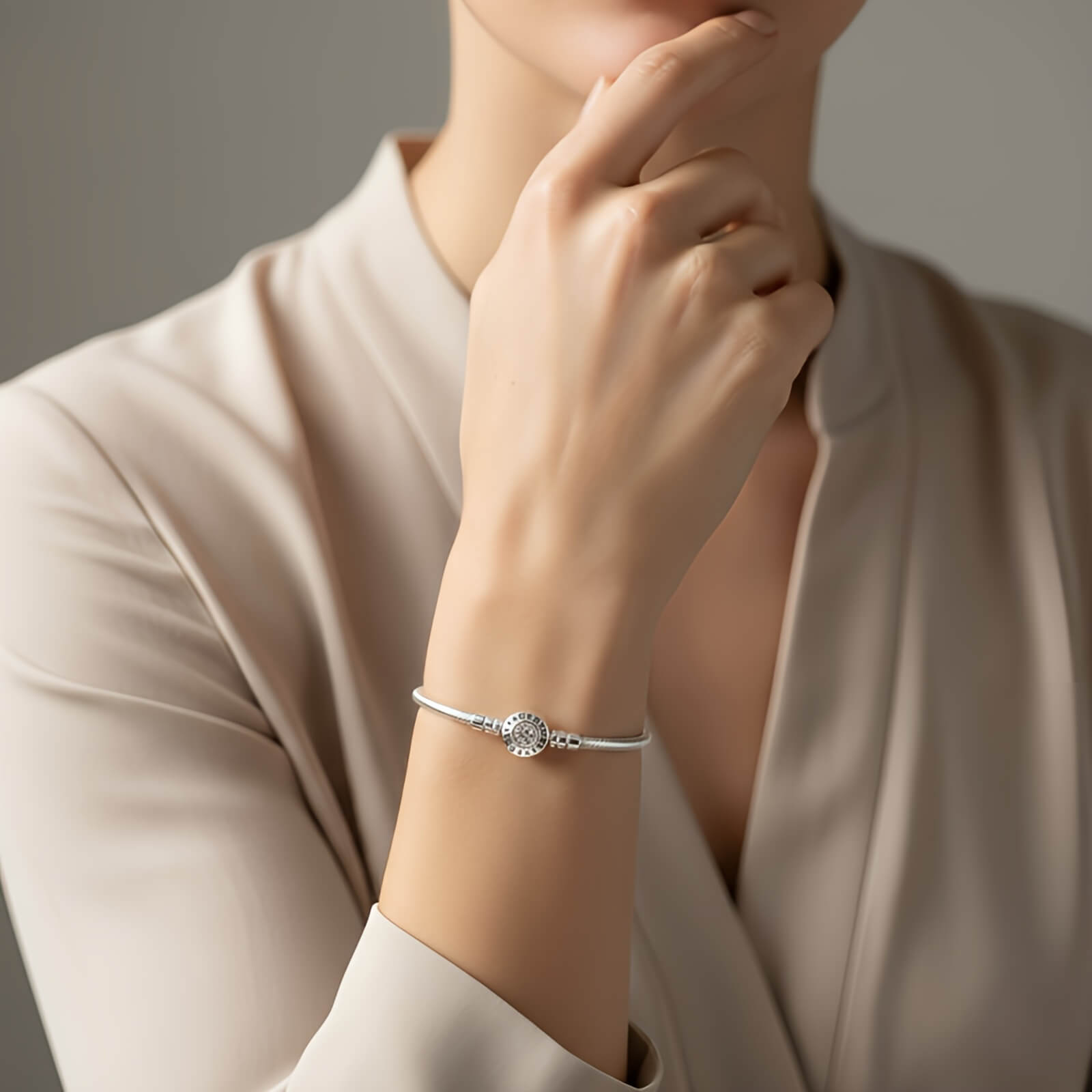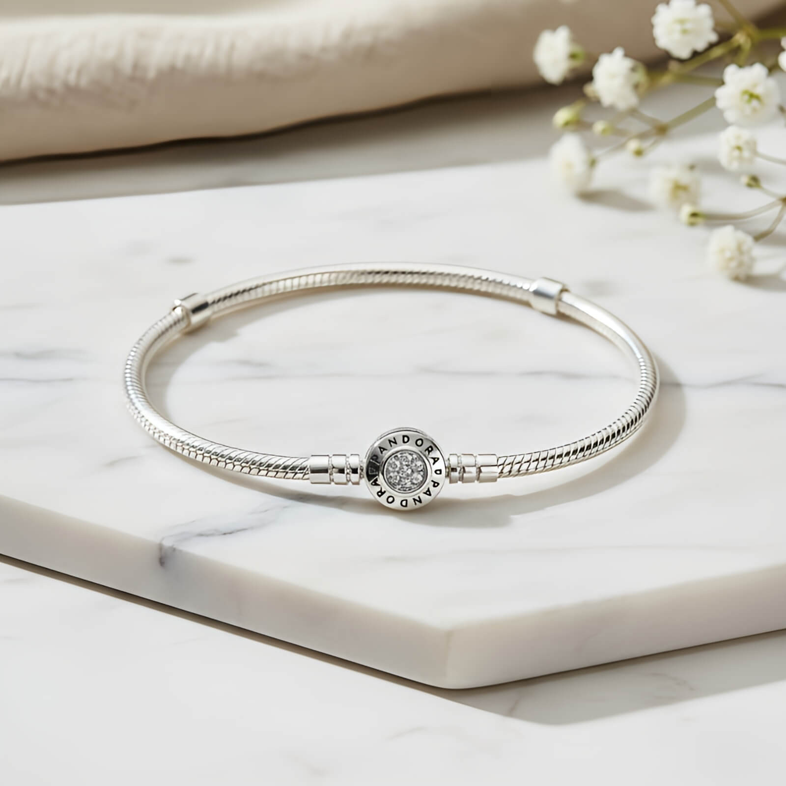O grande destaque é o seu fecho tipo barril, que além de oferecer segurança máxima, possui um acabamento cravejado que adiciona um toque extra de sofisticação ao pulso. É a base perfeita para você eternizar seus momentos, suportando perfeitamente seus berloques e pingentes favoritos.